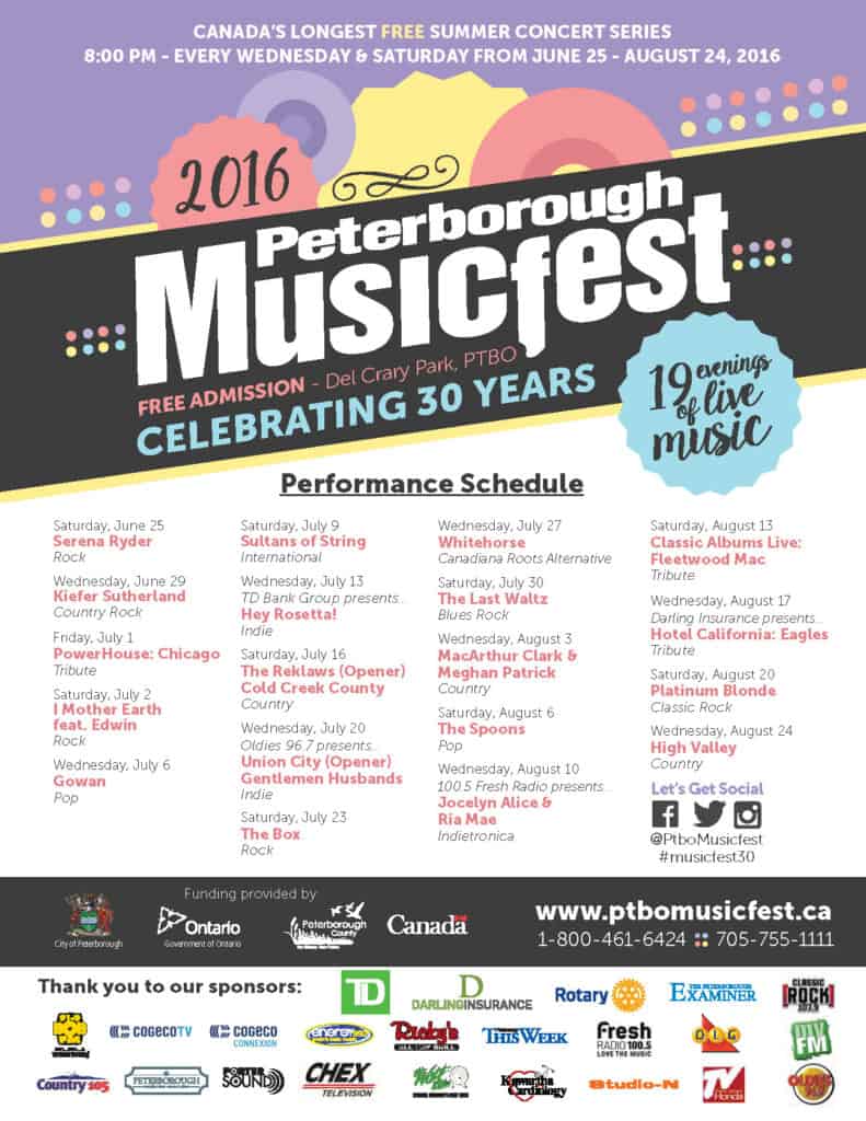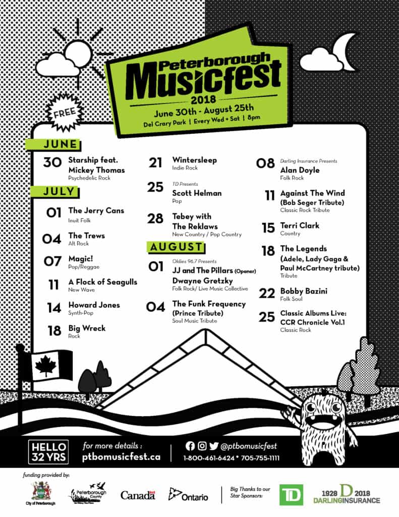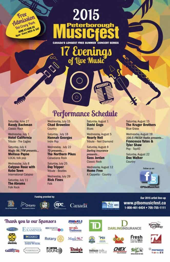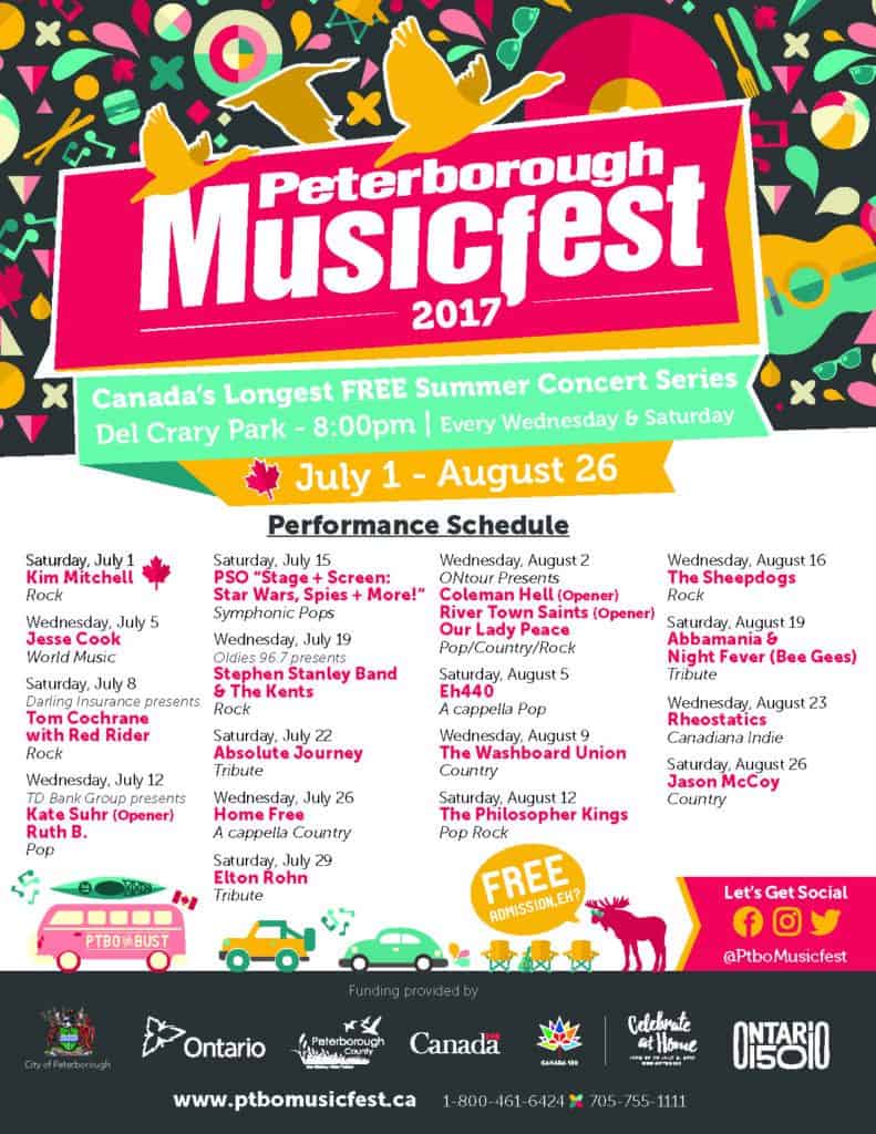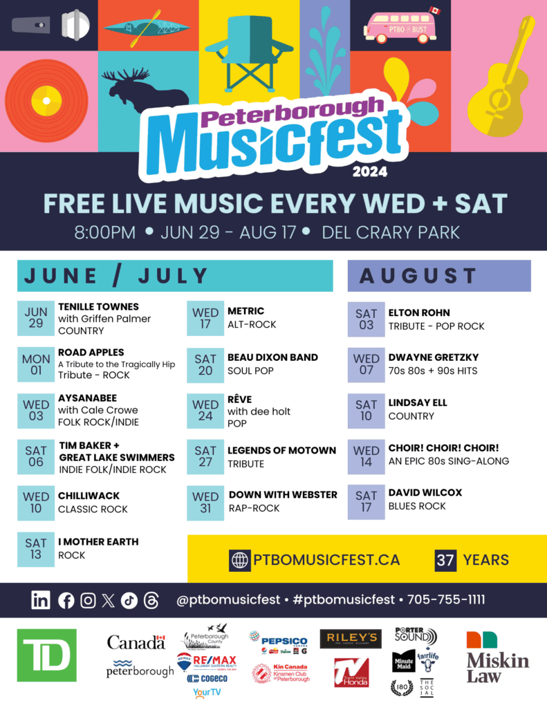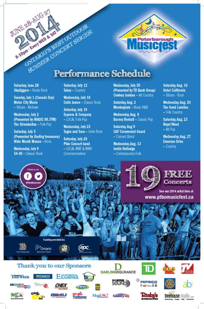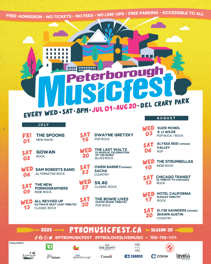We’re funded by corporate sponsorships (most of whom are small locally owned businesses), through multi-level government support, fundraising initiatives, and private donations and we remain steadfastly, and uniquely, free of charge for our audience. That’s right – it is absolutely FREE to see the likes of Sloan, Serena Ryder, Gordon Lightfoot, 54.40, Blue Rodeo and so many others at Peterborough Musicfest because this feisty, industrious, creative city believes music should be enjoyed by all people, regardless of their ability to pay.